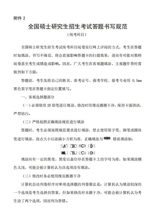 2. 全国硕士研究生招生考试答题书写规范(统考科目)