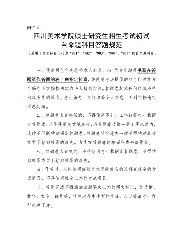 4. 四川美术学院硕士研究生招生考试初试自命题科目答题规范(适用于考试科目代码为“901”、“902”、“903”、“904”、“905”的自命题科目)
